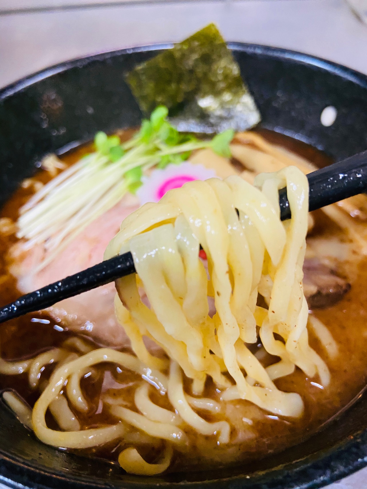 麺は、ラーメンとつけ麺でそれぞれ違う麺を使用。どちらもうまみと歯応えのある麺です。